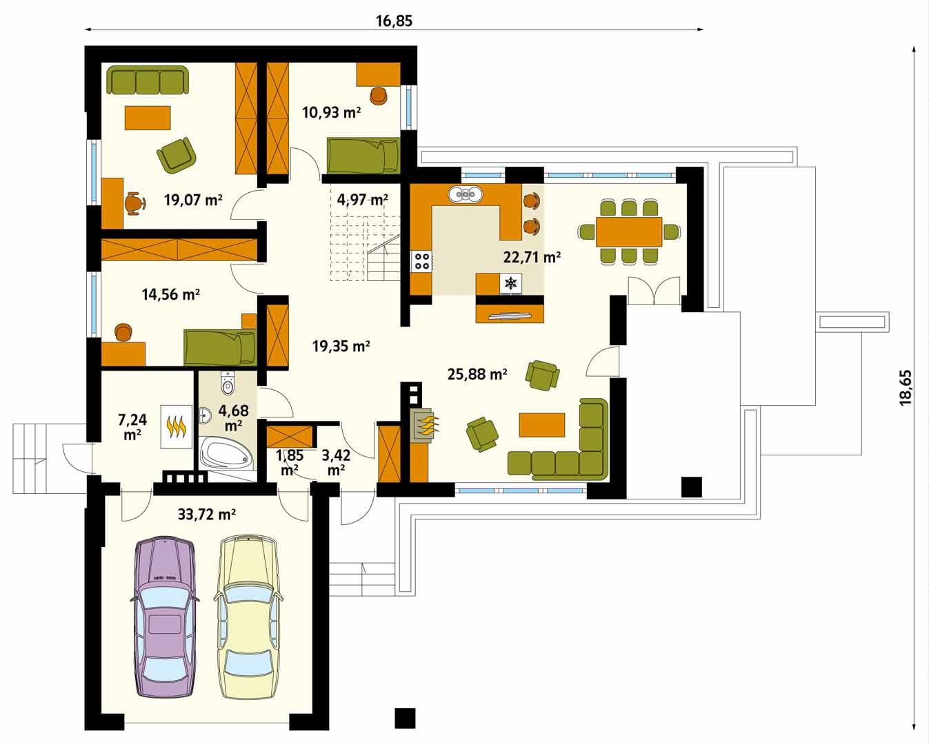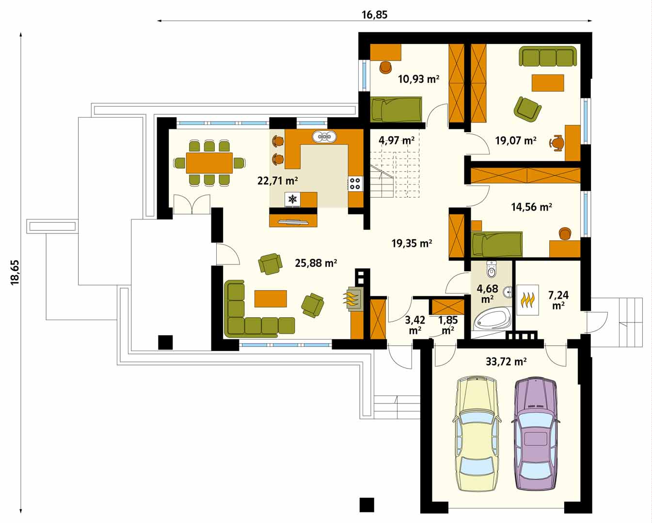 Проект большого мансардного дома с гаражом AKSAMIT 2