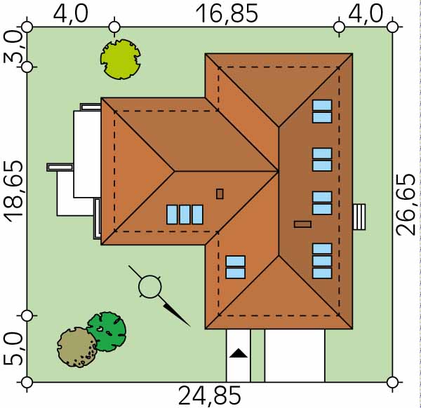 Размеры участка: 24.85 х 26.65 м