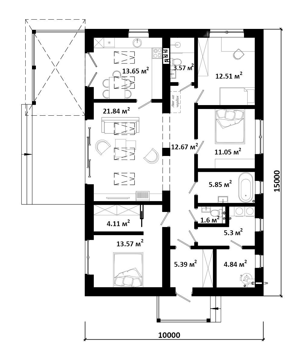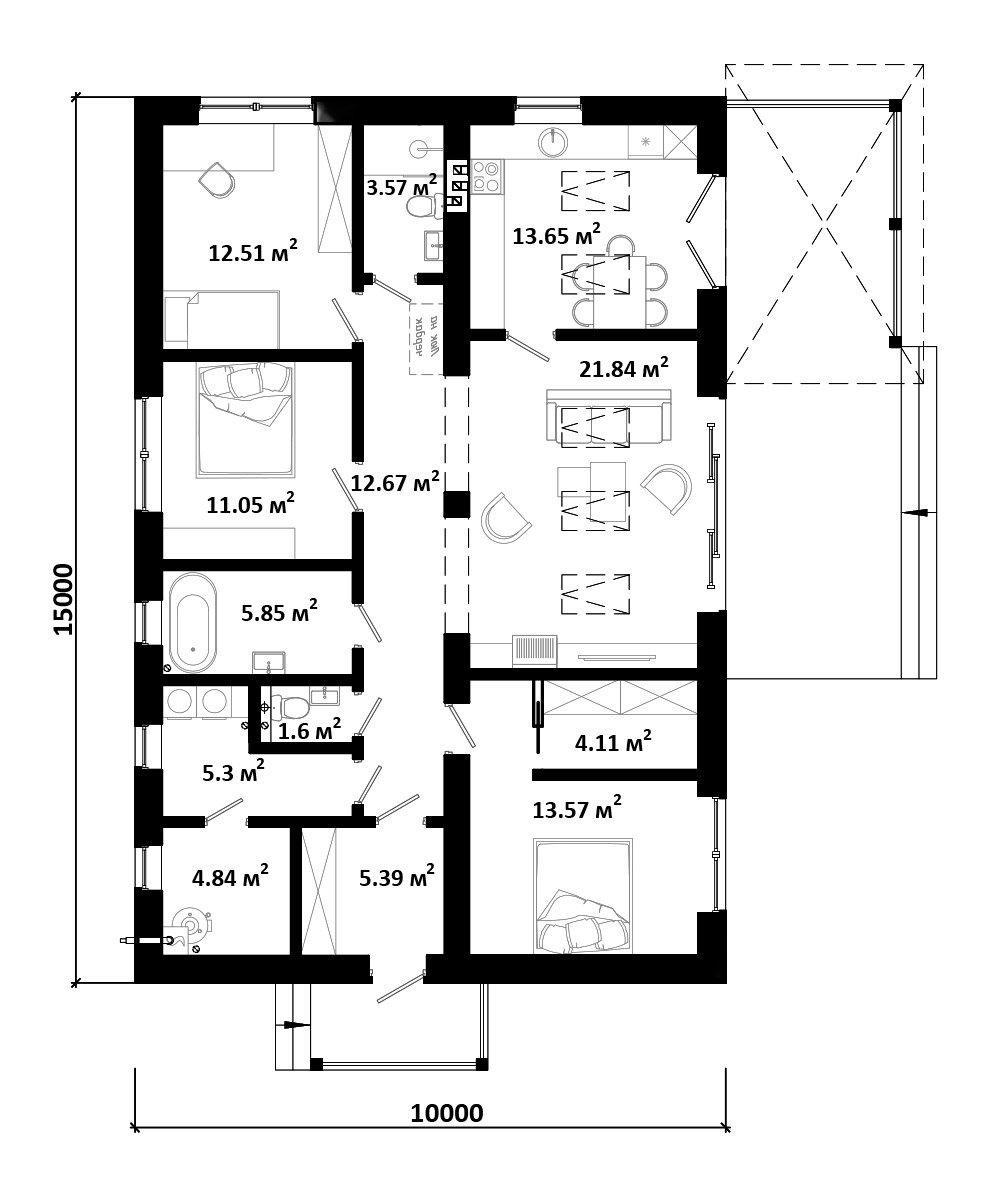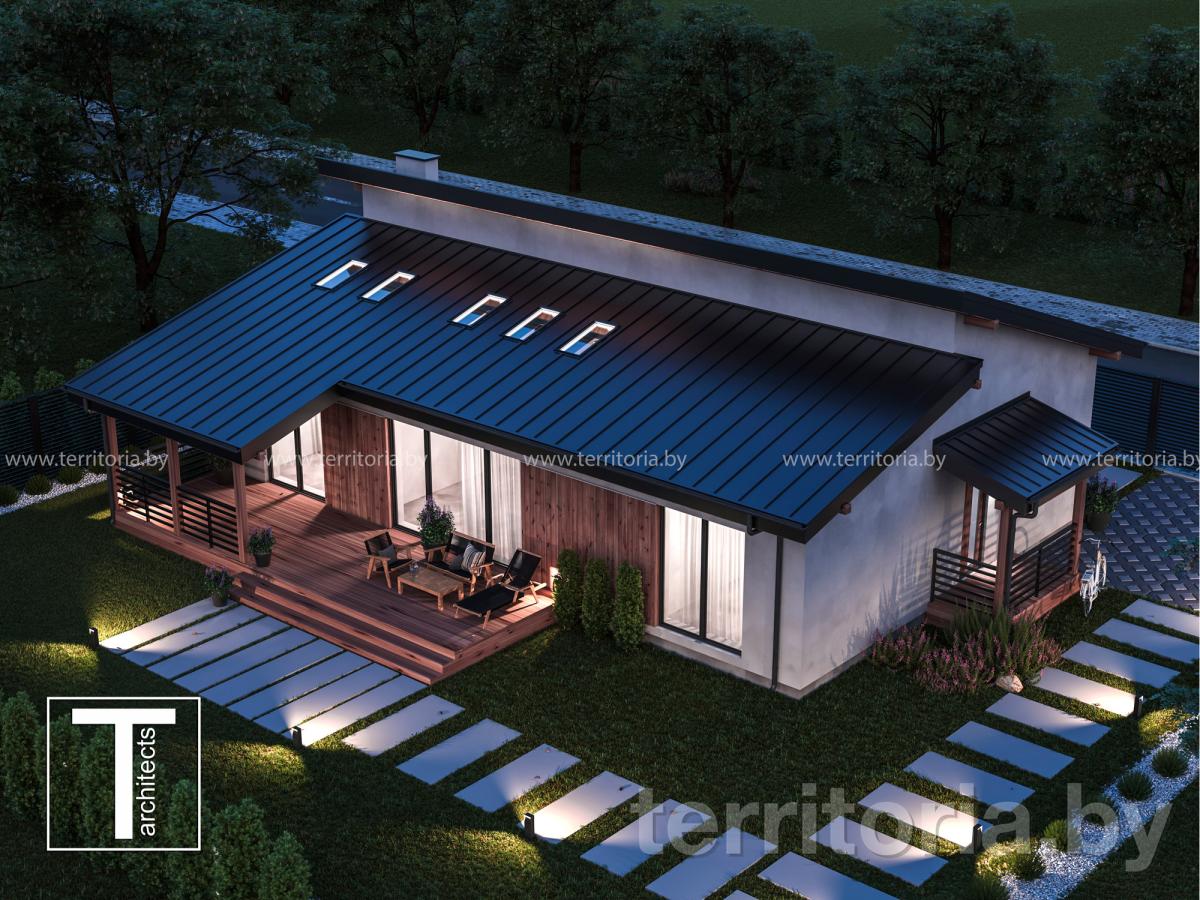 Проект одноэтажного дома с террасой ПРОСТОЙ