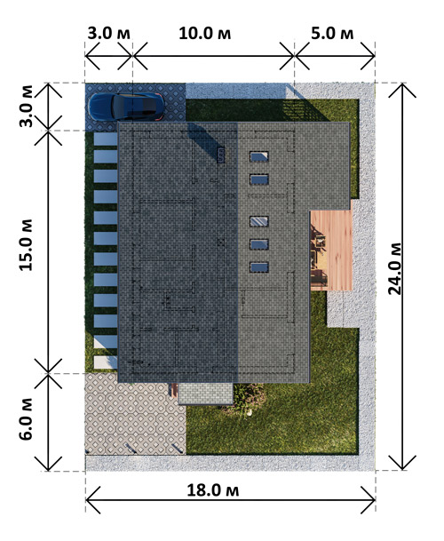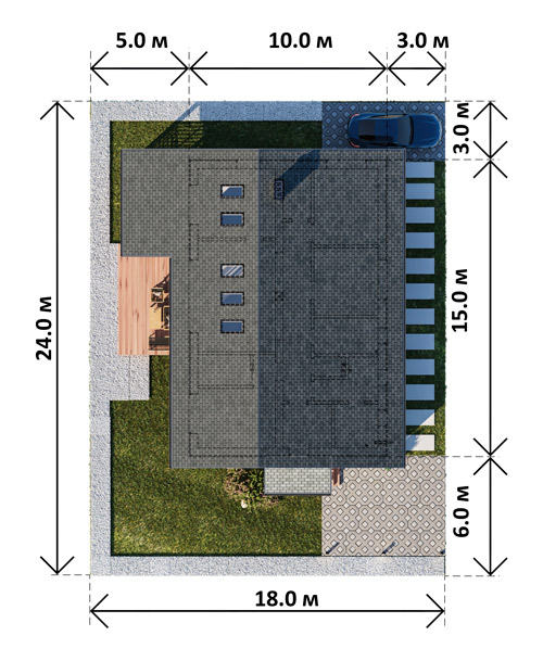 Площадь застройки: 183,6 м Размеры участка: 18 * 24 м Строительный объем: 664 м Срок подготовки проекта: 5 днейСтроительство: ~ 8 120 000 ₽